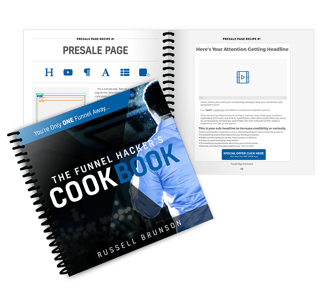 This book is going to show you all the elements necessary to build a funnel. It’s going to show you all the pages necessary to build your funnel. It’s going to show you all the core funnel types that you need, but this book does not go deep into strategy. It won’t show you how to position your offers or craft your messages. These topics are covered in the “Dot Com Secrets” and “Expert Secrets”. The cookbook is designed to be a companion manual to those books. So if you haven’t yet read “Expert Secrets” or “Dot Com Secrets”, we highly recommend doing so now.